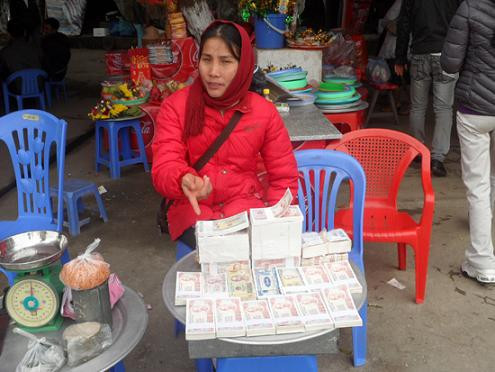 | Những người làm dịch vụ đổi tiền lẻ tại các lễ hội cũng "trúng đậm" bởi nhu cầu tiền đi lễ, tiền giọt dầu của du khách rất lớn và thường phải đổi với mức chênh lệch 10/7 hoặc 10/6 (Tức đổi 100 nghìn được 70 hoặc 60 nghìn tiền lẻ). |