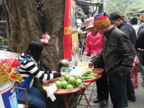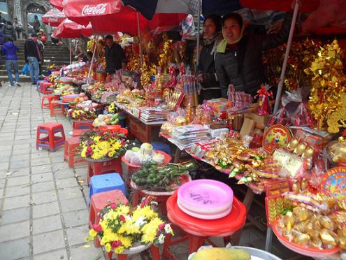 | "Sắp lễ thuê" cũng là một dịch vụ "hốt bạc" bởi nhiều du khách ở xa nên rất ngại mang theo đồ lễ nên thường đến nơi mua hoặc thuê làm sẵn cho tiện. |