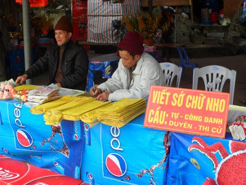 | "Mâm cao cỗ đầy không tày lá sớ", dịch vụ viết sớ chữ Nho thường rất đông du khách đến thuê với giá cao ngất ngưởng. |