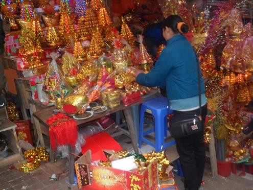 | Các cửa hàng bán cây vàng, cành lộc tại các đền chùa cũng rất đông khách vào những ngày lễ hội. |
