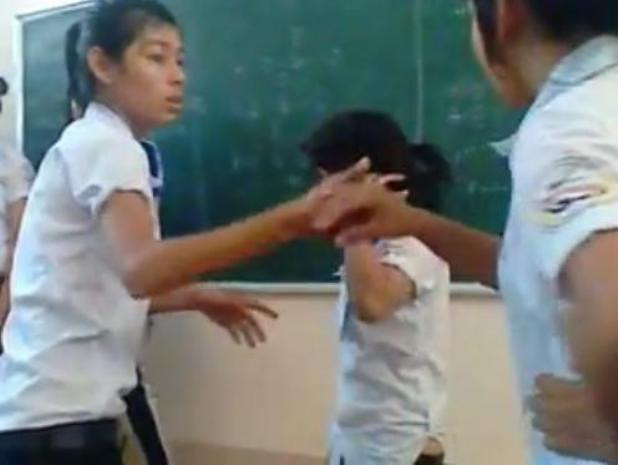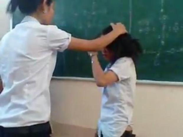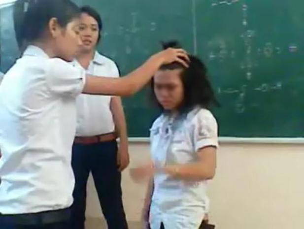 | Xuống tay với ngay cả bạn cùng lớp bằng những cú đòn hiểm ác như túm tóc, tát túi bụi và...lên gối |