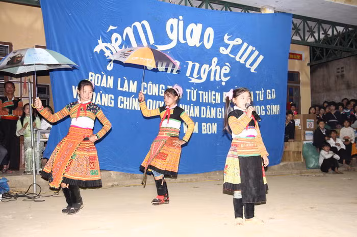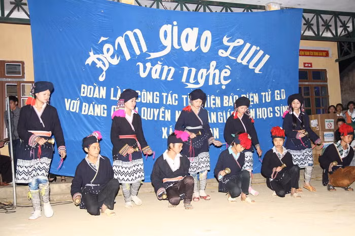 | Cả người dân trong xã cũng tham gia biểu diễn |