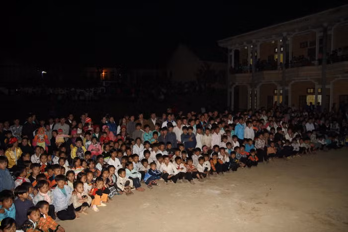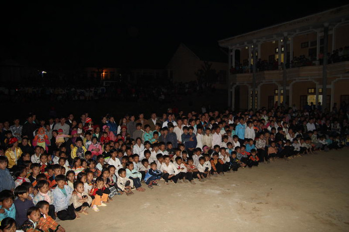| Em bé ở Kim Bon theo mẹ đi xem văn nghệ, rất lâu rồi mới có một đêm diễn như này ở Kim Bon |