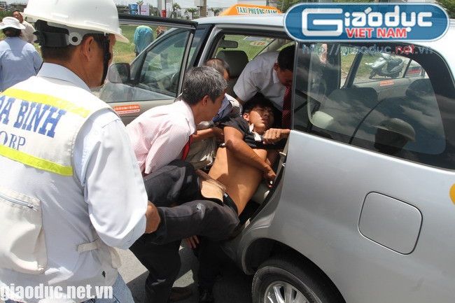 | Tại hiện trường, xe máy bị hư hỏng nặng phần đầu, taxi bị móp và hư kiếng chiếu hậu bên phải xe. Tuy nhiên, tài xế taxi Huỳnh Chí Cường lại rất chậm trễ trong việc đưa người bị tai nạn đi cấp cứu. Đáng lẽ việc ưu tiên nhất là bảo toàn mạng sống cho người bị tai nạn, sau khi xảy ra va chạm, tài xế xe taxi lại chỉ “chú tâm” gọi điện thoại và chụp hình hiện trường tai nạn. Rất nhiều người đi đường phản ứng trước thái độ trên. |
