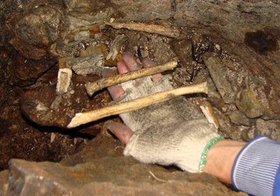 | Những đống xương nằm trong động không biết bao nhiêu năm rồi. |