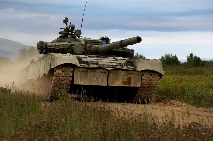 | Xe tăng T-90 nã pháo vào mục tiêu |