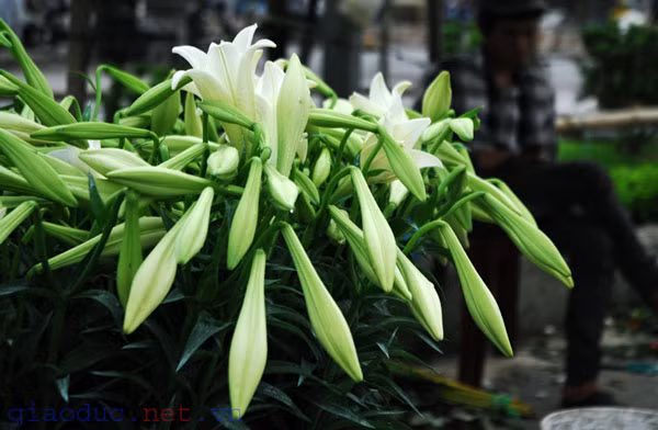 | Mỗi ngày, tại các vườn hoa như Nhật Tân, Tây Tựu ... hàng ngàn cành hoa loa kèn được đưa đi khắp các con phố Hà Nội . |