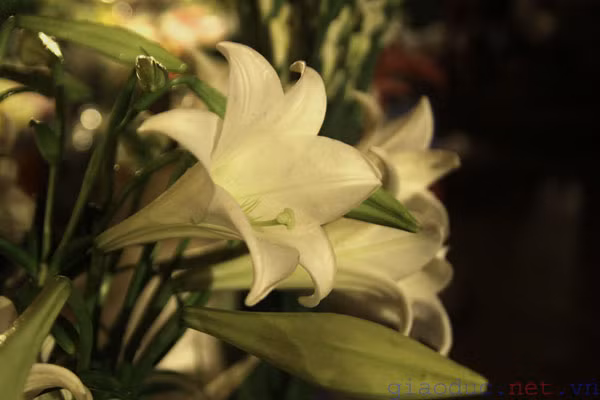 | Ở chốn Hà Thành, hoa loa kèn e ấp như những nàng thiếu nữ.. |