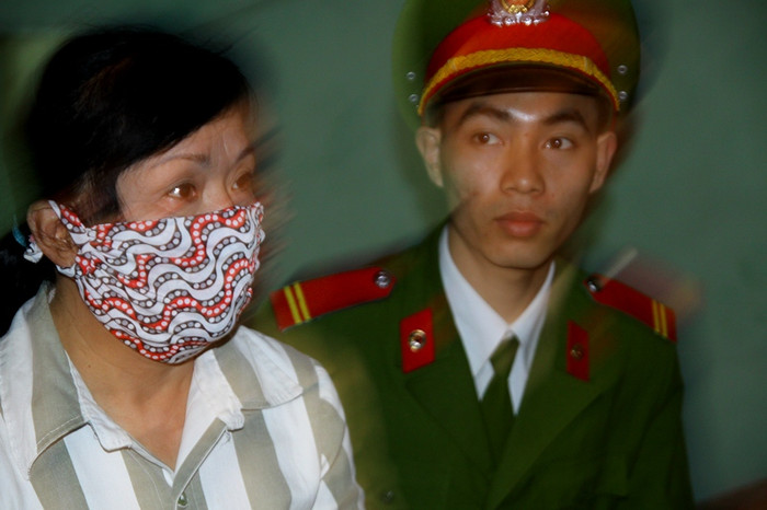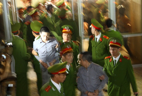 | Lê Văn Luyện và các bị cáo được áp tải vào bên trong tòa. |