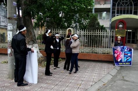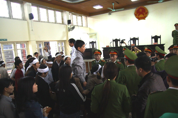 | Nhiều người dân đã tụ tập ở ngoài Tòa án để nghe phiên xử phúc thẩm Lê Văn Luyện. |