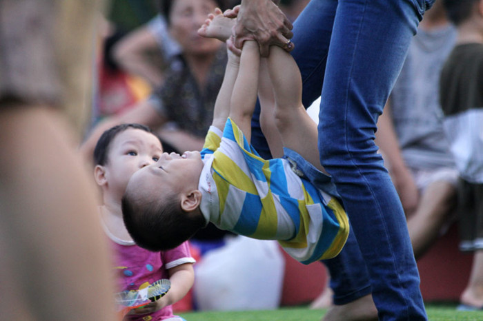 | Được bà đưa ra công viên Nghĩa Đô sau giờ tan học, tại đây các bé được vui chơi cùng bạn bè, được nhảy múa, ca hát thỏa thích. |