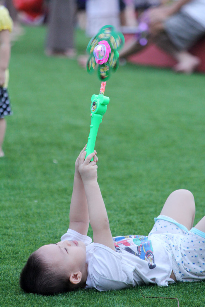 | Chơi chong chóng cùng ông là một sở thích của bé trai này. |