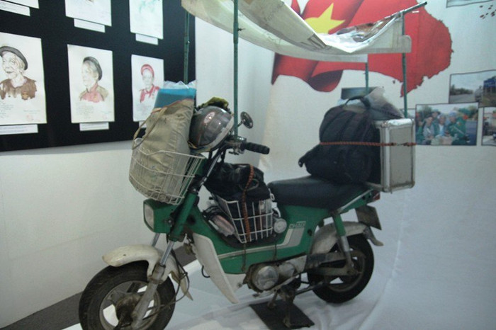 | Chiếc xe máy Chaly đã đồng hành cùng hõa sỹ Đặng Ái Việt vượt hơn 35.000km qua 63 tỉnh thành để vẽ chân dung Mẹ Việt Nam anh hùng từ ngày 19/2/2010-27/6/2012. |