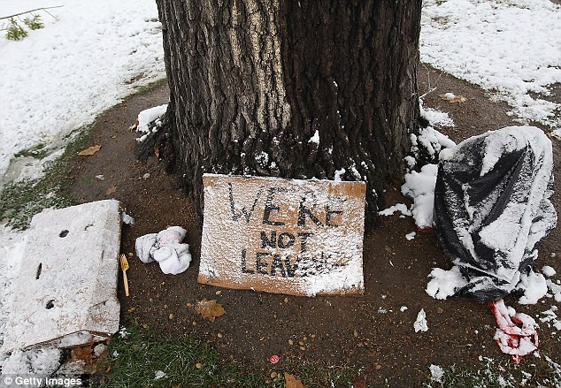 | Một người biểu tình kiên trì đứng trong mưa tuyết ở phố Wall |