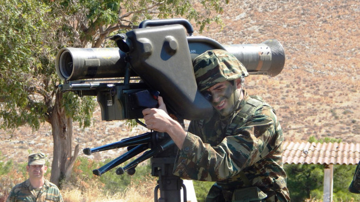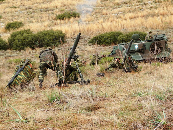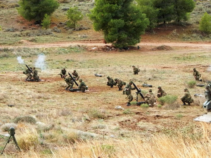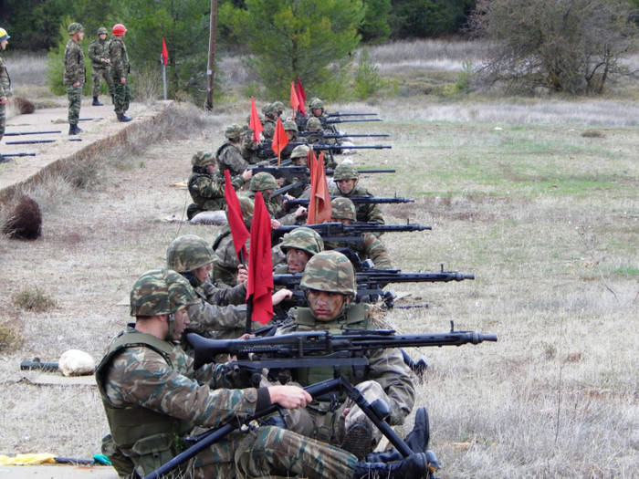 Sau khi hoàn thành huấn luyện cơ bản, tất cả các tân binh của Lục quân Hy Lạp sẽ được trải qua các kỳ diễn tập tổng hợp trong đó có nội dung sử dụng các loại vũ khí bộ binh được biên chế trong quân đội nước này.