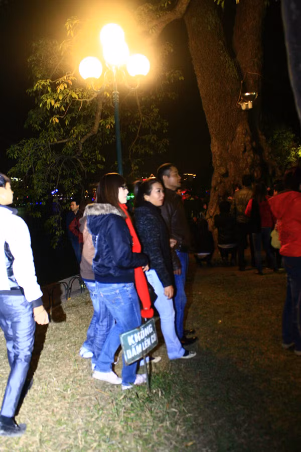 | Không chụp được ảnh ở vườn hoa, các bạn trẻ còn nhảy hắn vào giữa các luống hoa ven hồ Gươm |