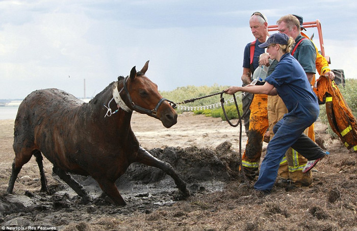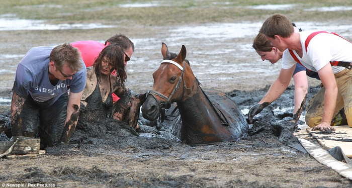 | Trước khi cô bị cảnh báo, con ngựa và con gái cô đã bị sa xuống chỗ cát lún. |