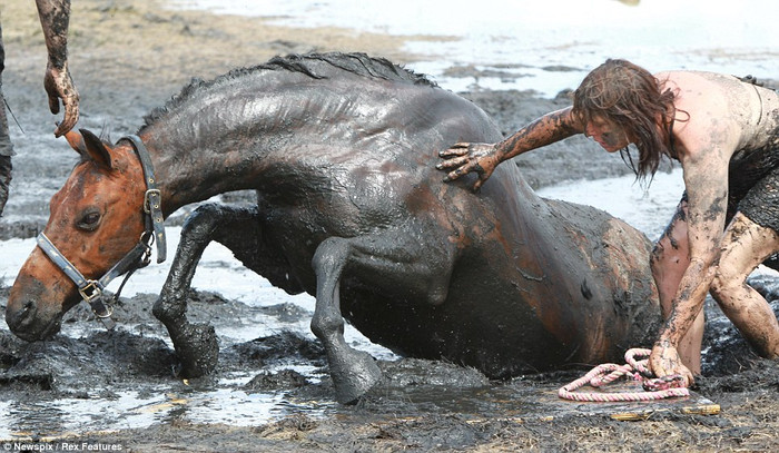 | Nhưng con ngựa Astro vẫn bị kẹt lại và nhanh chóng chìm sâu dưới vùng cát lún nhão như bùn. |