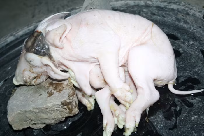 Dưới đây là những hình ảnh về chú lợn 3 tai, 8 chân kể trên: