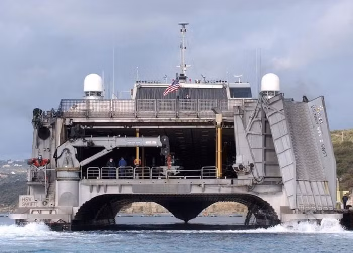 | Chuyên vận hạm HSV Swift được thiết kế với chiều dài 113m, rộng 30,5m, diện tích khoang chứa là 2000 mét vuông, cao 5m và trọng tải tối đa đạt 2500 tấn. |