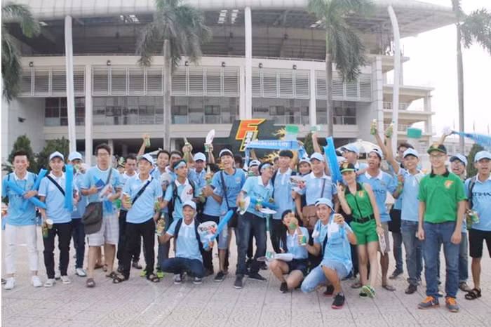 | Niềm vui vỡ òa của cổ động viên khi được Trà xanh F247 và nước tăng lực Cà phê Wake-up 247 tiếp thêm sức mạnh cổ vũ trận đấu giữa Đội tuyển Việt Nam - CLB Manchester City. |