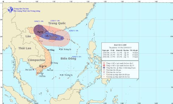 Dự báo trong 24 giờ tới, bão di chuyển theo hướng giữa Tây và Tây Tây Bắc, mỗi giờ đi được khoảng 15 – 20 km. Đến 04 giờ ngày 23/06, vị trí tâm bão ở vào khoảng 20,2 độ Vĩ Bắc; 108,1 độ kinh Đông, trên khu vực vịnh Bắc Bộ, cách bờ biển Quảng Ninh – Hải Phòng khoảng 180 km về phía Đông Đông Nam. Sức gió mạnh nhất vùng gần tâm bão mạnh cấp 8 (tức là từ 62 đến 74 km một giờ), giật cấp 9, cấp 10.