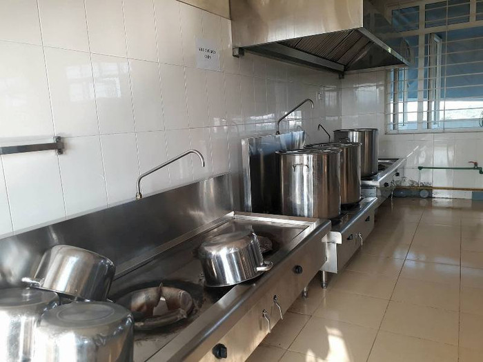 | Khu vực nấu ăn bán trú của Trường Tiểu học Chu Văn An, Hoàng Liệt, Hoàng Mai, Hà Nội. Ảnh Trần Việt. |