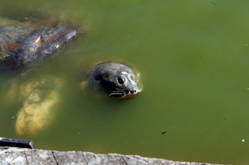 | Rùa ngóc lên như muốn trèo lên bờ. |