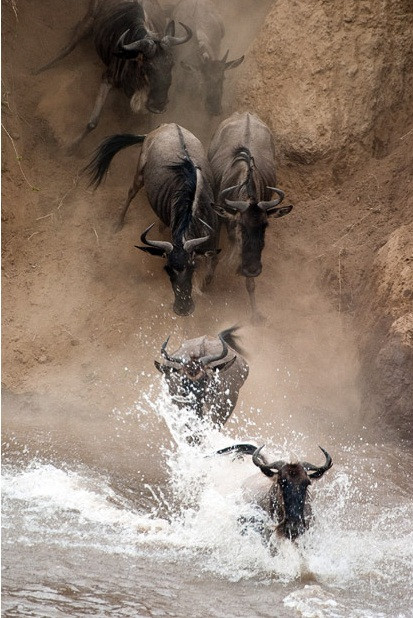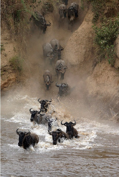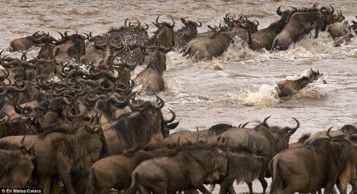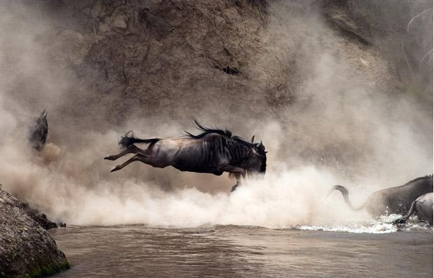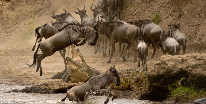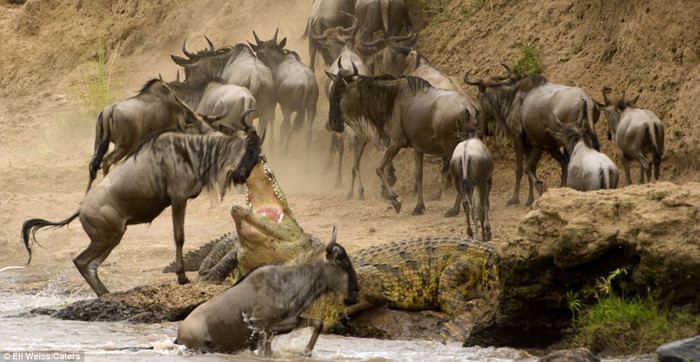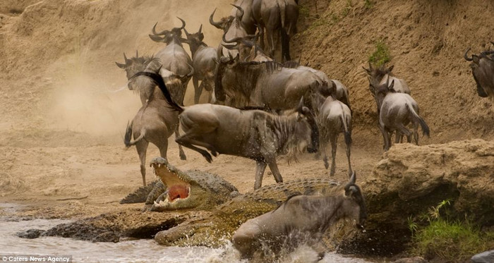 (GDVN) - Đây là khoảnh khắc đáng kinh ngạc khi một con linh dương đầu bò khi nó thực hiện cú nhảy ngoạn mục vọt qua cái miệng đang há rộng của con cá sấu nặng tới hơn nửa tấn. Mỗi năm, đàn hơn khoảng 1,5 triệu con đều phải mạo hiểm đối mặt với những mối hiểm họa rình rập đầy hai bờ thế này để vượt qua sông Mera (Kenya), tìm tới vùng đất sinh sản. Những con nhanh chân và khôn khéo sẽ sống sót, trong khi những con yếu ớt và kém may mắn hơn sẽ phải trở thành mồi cho lũ cá sấu hoặc sư tử rình rập trên các đồng cỏ.