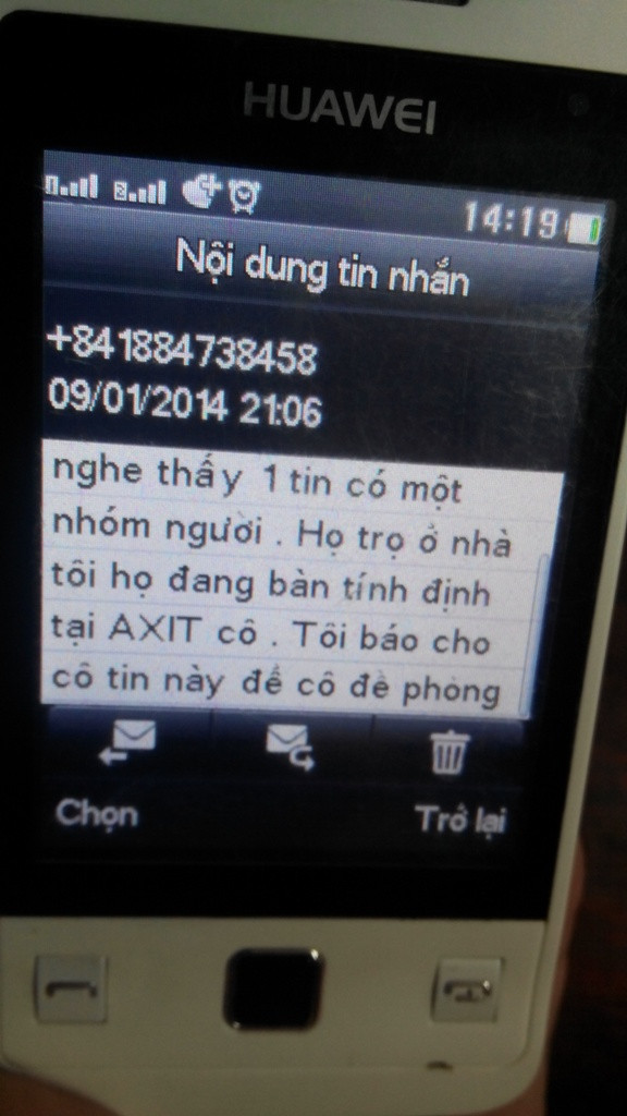 | Nội dung tin nhắn đến điện thoại của bà Tâm |