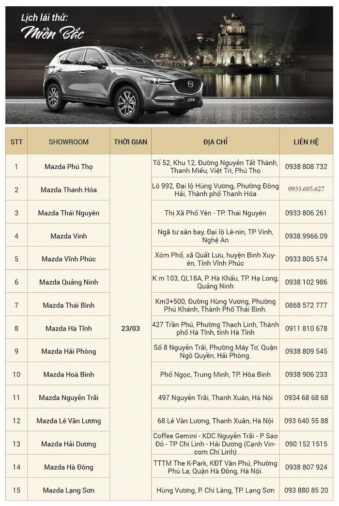 Tham dự chương trình, bên cạnh việc trải nghiệm các dịch vụ chuyên nghiệp của Mazda, trực tiếp lái thử Mazda CX-5, khách hàng ký hợp đồng mua xe tại sự kiện còn được nhận ưu đãi lên đến 40 triệu đồng.