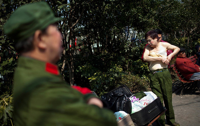 | Ông Tào trong trang phục văn công Hồng vệ binh |