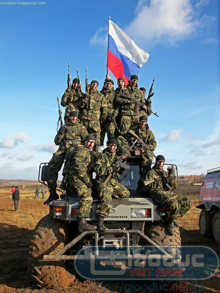 | Lính nhảy dù mang quốc kỳ Nga |