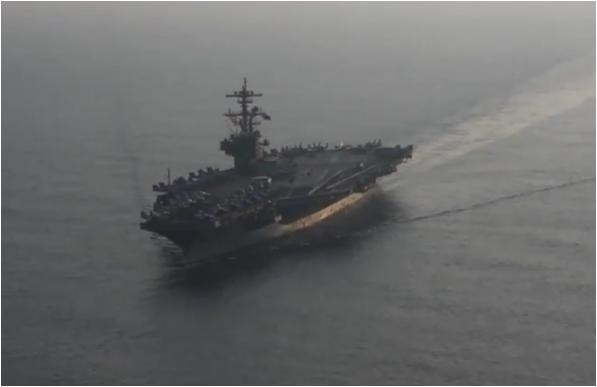 Dưới đây là video quay ngày 18/10/2014 ghi cảnh hai tàu sân bay hạng nặng của Hải quân Mỹ bàn giao địa bàn trên Vùng Vịnh.