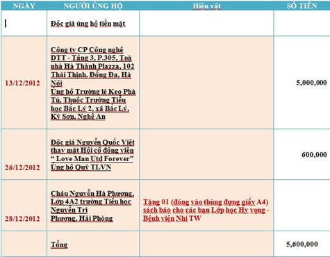 Mọi sự ủng hộ xin gửi về: