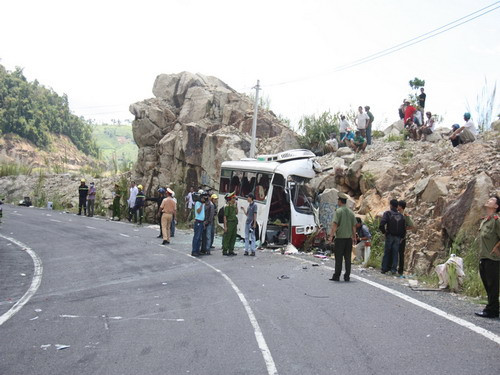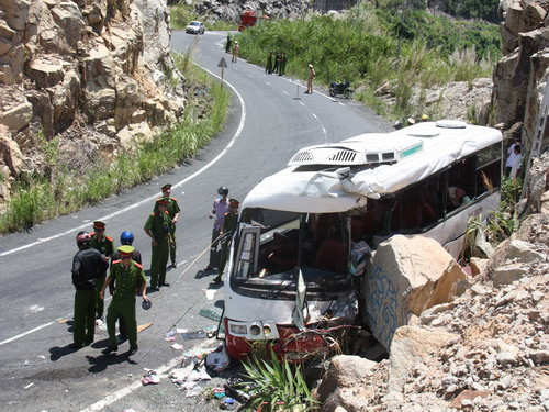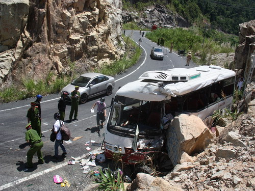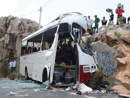 | Khoảng 9g45 sáng nay (7-6), trên đường đèo Khánh Lê- Đà Lạt, thuộc địa phận xã Sơn Thái, huyện Khánh Vĩnh (Khánh Hòa), xe khách 30 chỗ của công ty Hoàng Hải Tùng (Đà Nẵng) đã đâm thẳng vào vách núi. |
