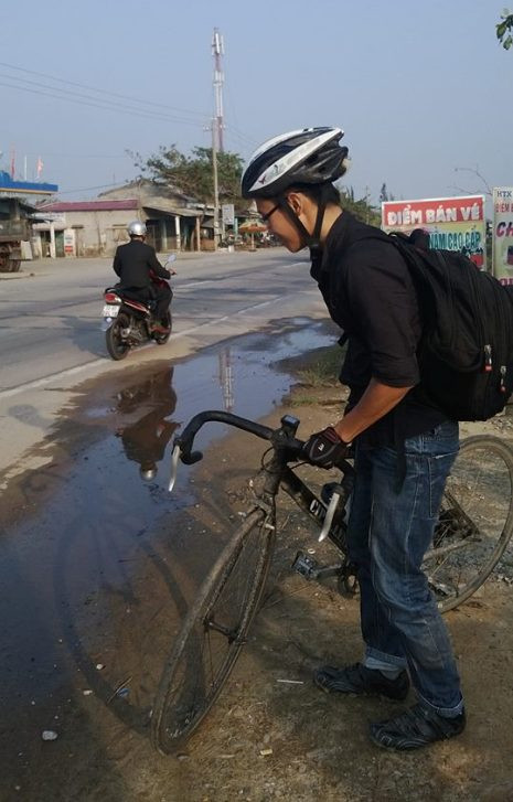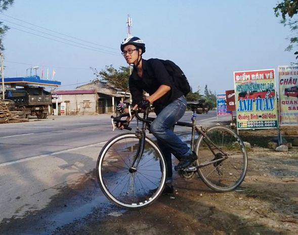 Hiện Tùng đang làm thợ sửa xe đạp. Theo Tùng chia sẻ, Tùng bắt đầu đi từ 5 giờ sáng ngày 10/10 tại Hà Nội, đến Ninh Bình, men theo đường xuyên Quốc lộ 1A, theo biển chỉ dẫn đến Quảng Bình.
