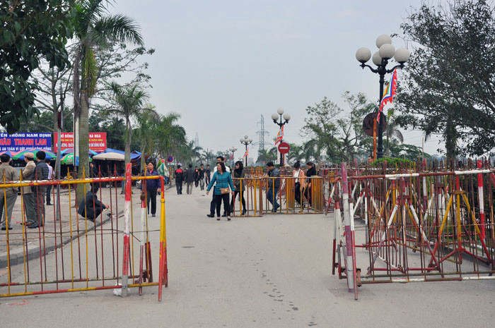 | Trên các tuyến đường phía ngoài đền Trần dòng người khách thập phương đổ về mỗi lúc một đông. |