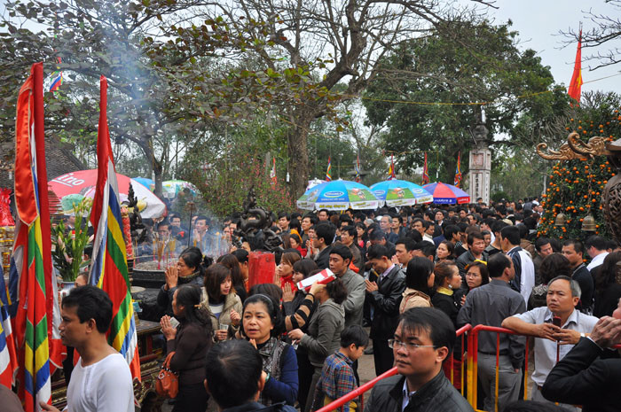 | 4. Đoàn người ùn ùn mang lễ vào thắp hương. |