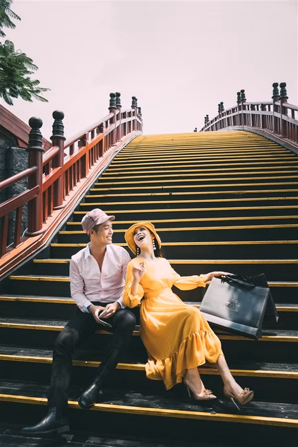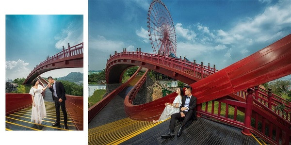 Bối cảnh đầu tiên họ tìm đến đương nhiên là cây cầu đỏ rực đang khiến giới trẻ phát sốt trên mạng xã hội.
