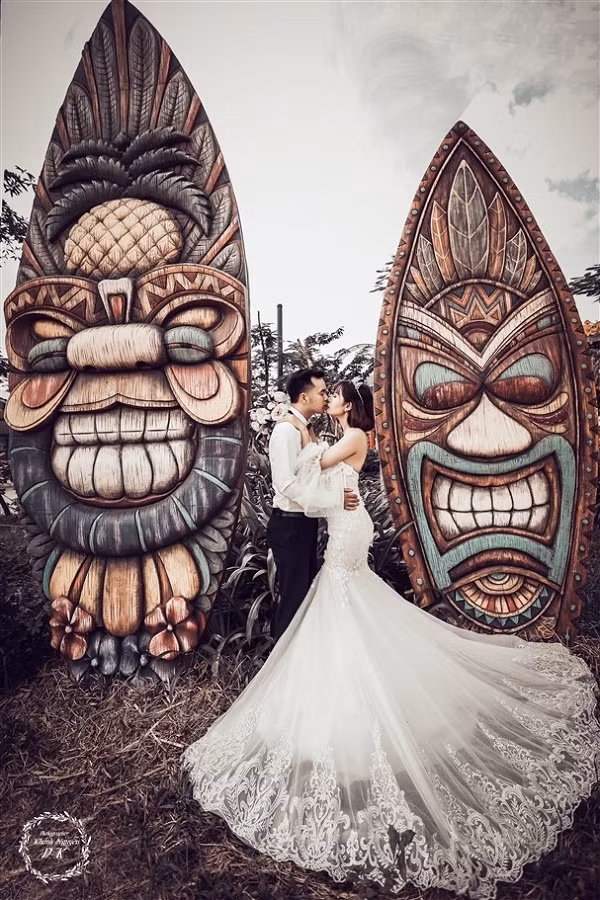 Nếu như vẻ lãng mạn trên đỉnh Ba Đèo cùng tuyệt phẩm Cầu Koi độc đáo đã hạ gục nhiều cặp đôi yêu thích sự trẻ trung và duyên dáng như Thư Ly - Hoàng Đức, thì các góc đẹp lạ pha trộn giữa bí ẩn và hoang dại ở Công viên Rồng (Dragon Park) lại thu hút các đôi uyên ương cá tính và thích sự đột phá, mới mẻ.
