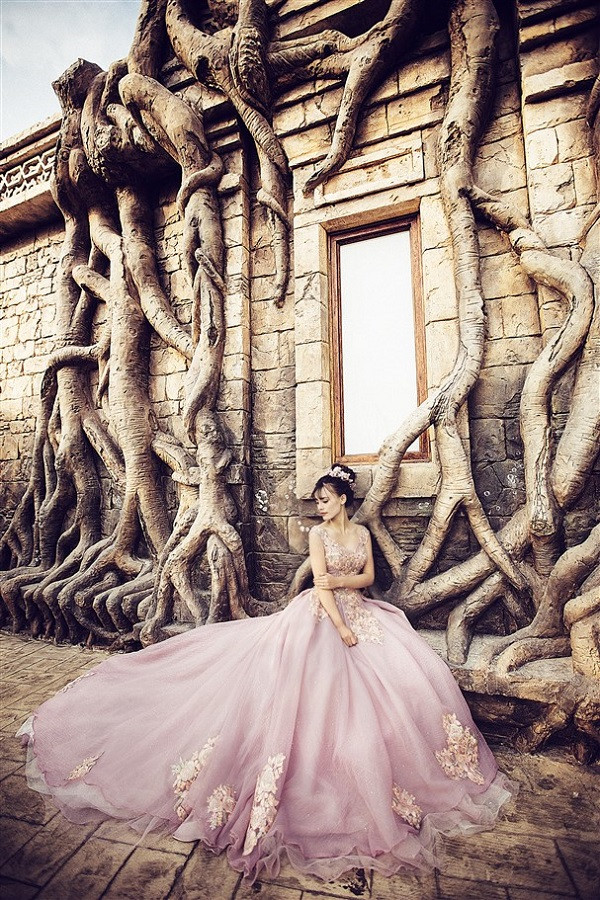 Hay lối dẫn vào trò chơi Phi long thần tốc với tượng sư tử cùng những khối đá điêu khắc cầu kì và độc đáo khiến cho nhân vật chính của bức ảnh cưới trở thành những chàng hoàng tử, công chúa bước ra từ cổ tích.