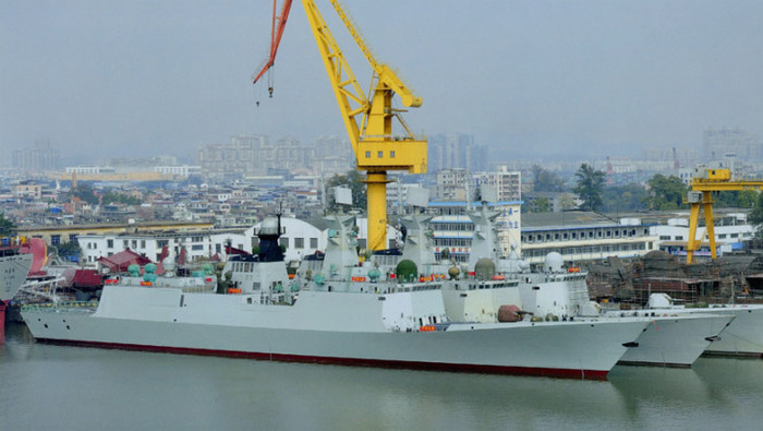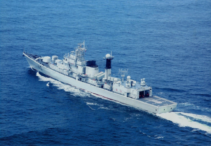| Tàu khu trục tên lửa hiện đại nhất của hải quân Trung Hoa Type-054A mang số hiệu 529, có tên Châu Hán |