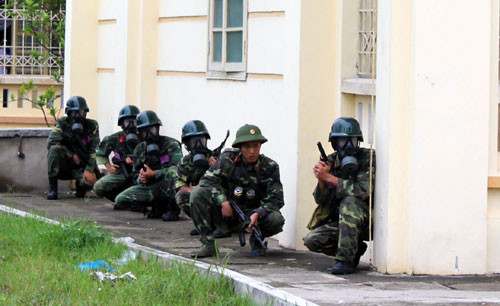 Trước yêu cầu của bọn khủng bố, để đánh lạc hướng của chúng và kéo dài thời gian, tạo điều kiện cho lực lượng cơ động bí mật tiếp cận mục tiêu, các đơn vị trinh sát đặc nhiệm, đặc công, phòng hóa, công binh của Quân khu do đồng chí Phó Tham mưu trưởng ra lệnh cho lực lượng bao vây chốt chặn, triển khai đồng bộ các phương án bảo vệ an toàn đại biểu dự hội nghị, đồng thời không cho nhóm khủng bố tẩu thoát.