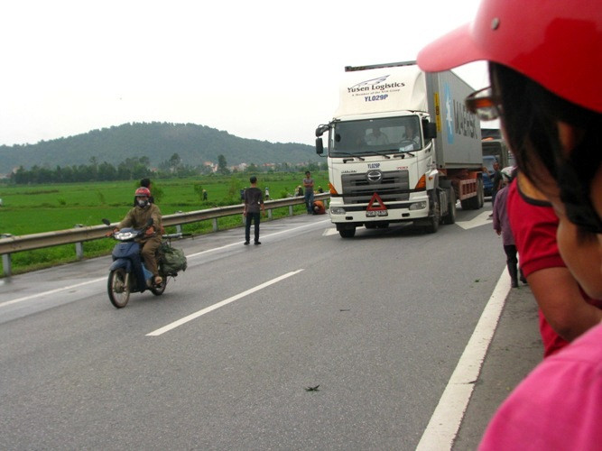 | Trên quốc lộ 1A, đoạn đi qua huyện Tiên Du, hàng trăm Phật tử địa phương đã giăng kín hai bên đường để đồng hành cùng vị sư này. |