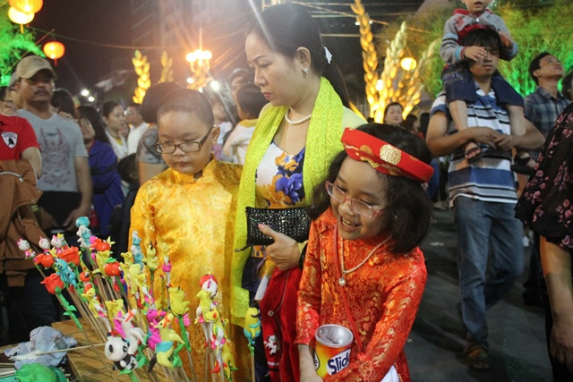 "Bao nhiêu một con tò he vậy chú? 20 ngàn đồng chị nhé!" Suốt cả một buổi tối, chú Đặng Văn Hải vừa nặn tò he vừa trả lời cho khách không ngớt. Đông đảo người dân tham quan đường hoa Nguyễn Huệ không thể không ghé qua gian hàng của chú. Nhiều du khách thích thú, chụp lại những bức ảnh độc đáo về các con tò he đầy màu sắc này. Đặc biệt là các em nhỏ, khách hàng chủ yếu của gian hàng chú Hải.