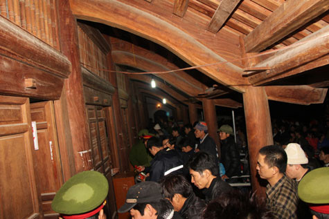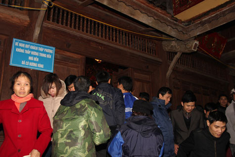 | Để tránh cảnh chen lấn, xô đẩy, 4 lối đi chính vào bên trong khu vực đền được lập hàng rào nghiêm ngặt, mỗi chốt có đến hàng chục cán bộ chiến sĩ công an canh gác, chỉ mở cửa cho nhân dân vào bên trong sau 23giờ đêm khi lễ phát lương diễn ra. |