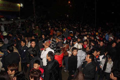 | Cũng như các năm trước, trong lễ phát lương năm Nhâm Thìn 2012, cũng có hàng ngàn du khách, nhân dân ở các nơi đổ về để chờ được phát lương. |