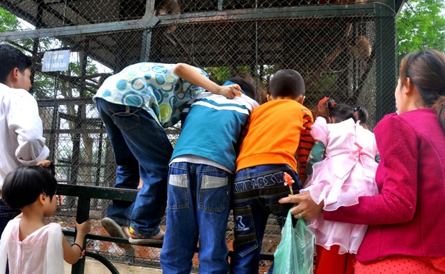 | Tại mỗi chuồng nuôi thú, ban quản lý đều đã có hàng rào để tạo khoảng cách du khách với các chuồng thú. Thế nhưng, từ người lớn cho đến trẻ nhỏ đều cố gắng len lỏi để được vào gần nhất các con thú. |