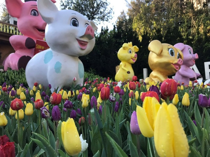Lẫn trong hàng ngàn bông tulip rực rỡ và quyến rũ ấy, là những chú heo ngộ nghĩnh, xinh xắn với đủ sắc màu và tạo hình.